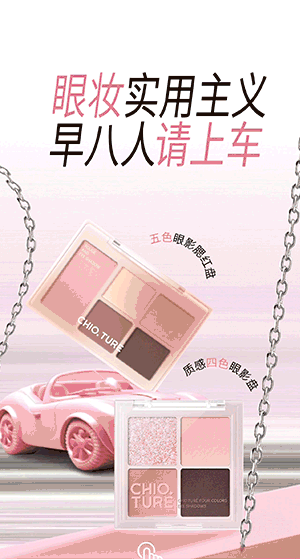 「点击切换GIF动图后展开」新手速妆质感四色眼影,多个平级「点击消失后展开」各个颜色的眼影盘,吸引读者前往购买。