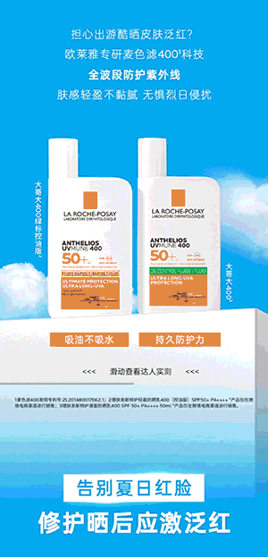 「前景左滑」查看理肤泉LaRochePosay系列防晒单品的介绍,从而开启夏季旅行计划,借此吸引读者前往购买。