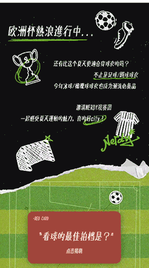 欧洲杯热浪来袭,「点击消失后展开」介绍NERDY OFFICIAL系列运动服装,吸引读者前往购买。
