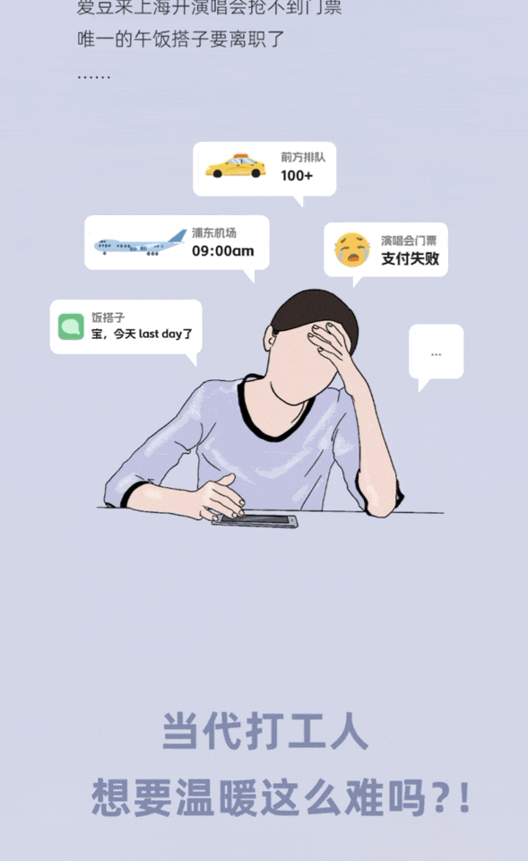 默沙东招聘的关于员工福利的文章,首先在创意上就十分出彩,通过场景漫画的形式让打工人狠狠共情,又将场景和温度等碎片结合。阅读的过程中每组元素随着滑动凑到一起,各组中的每个元素滑动时速度各异来控制整体效果,这也是视差的一种经典呈现方式。