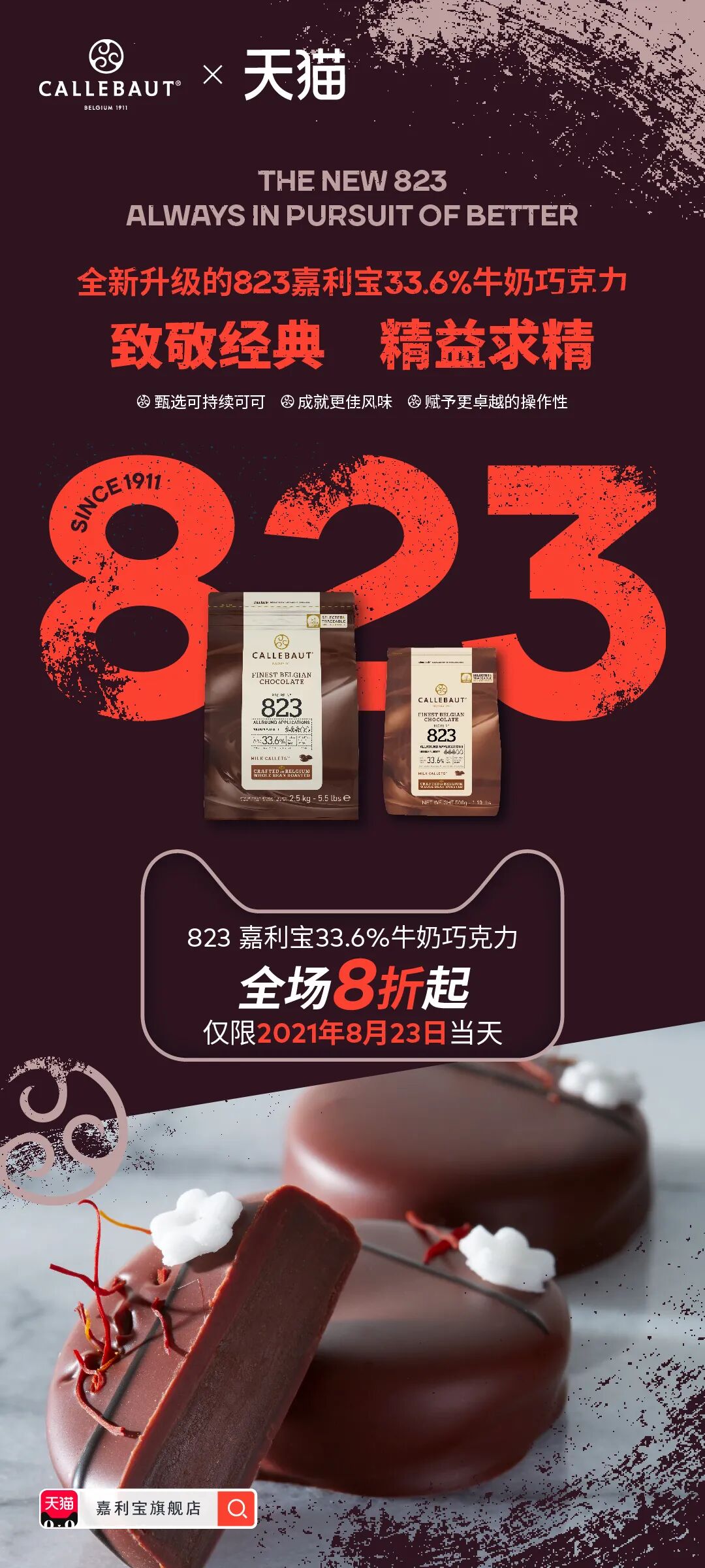 如今,嘉利宝823牛奶巧克力倍受全世界糕点制造商、糕点厨师以及巧克力商的青睐,成为全球的标准,广为业界效仿。
