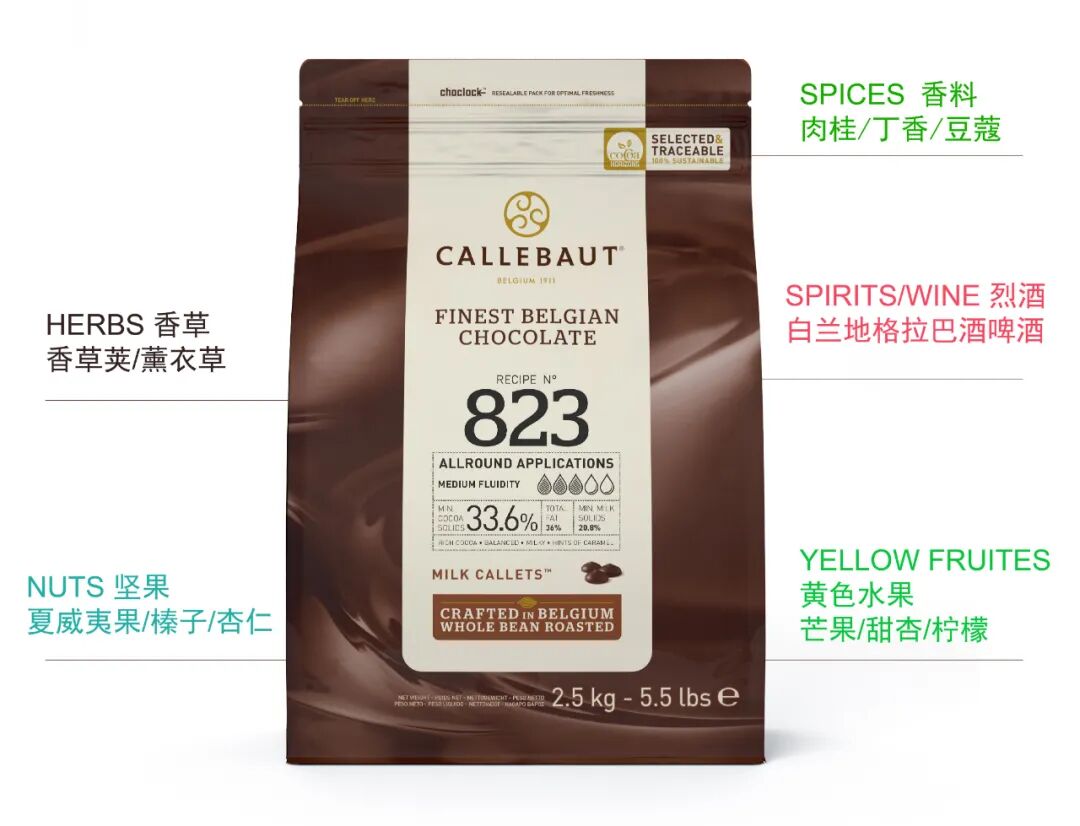 嘉利宝823牛奶巧克力非常适合大众口味,可随意搭配不同食材,如口味强烈的水果、香草、牛奶或烈酒味等。