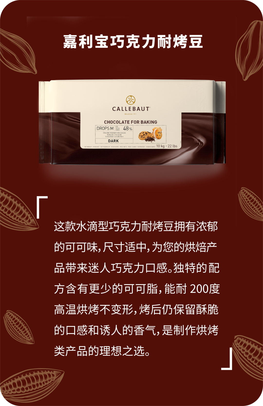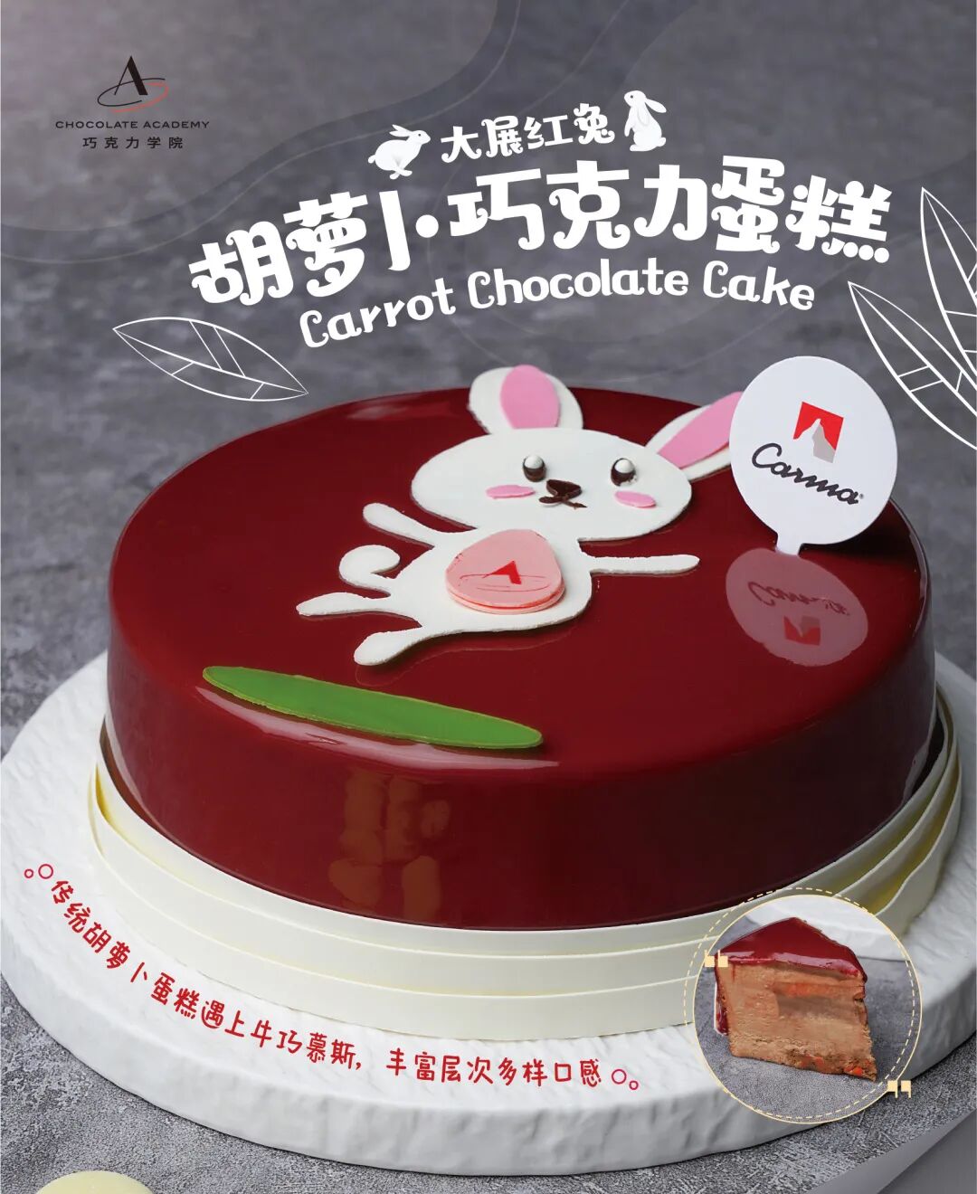 柔软的胡萝卜蛋糕胚湿润可口,加入嘉利宝巧克力耐烤豆,让整块蛋糕在烘烤后充满浓郁的可可香气,贯穿整体的风味节奏,简单的滋味里弥漫着不简单的记忆。