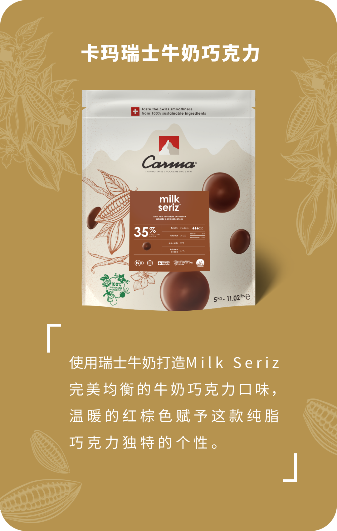 柑橘与卡玛牛奶巧克力搭配制作慕斯,交织出清甜乳香的口感。不仅中和了牛奶巧克力的甜度,还增加一层柑橘水果的清香,让本就丰富的味觉层次变得更加灵动多变。