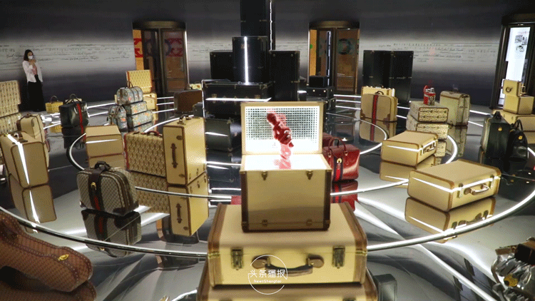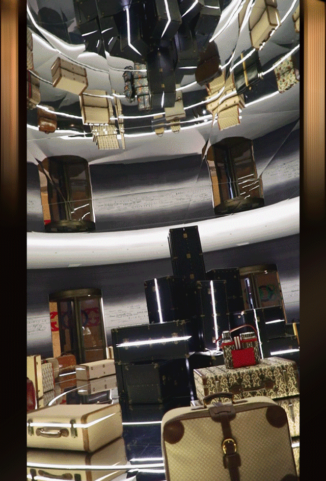 走进致敬萨沃伊酒店的数道旋转门入口,三条移动的环状行李传送带映入眼帘,上面装载着古驰最为精美的行李箱设计,是不能错过的明星同款打卡点。