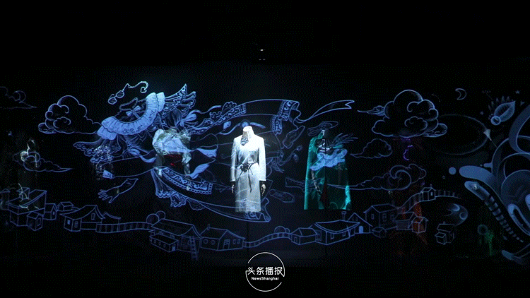 由32个人形模特组成的队列,身着20世纪70年代至今的古驰服饰,如同时装模特一般在T台上不断移动。移形换影的动态效果,值得站定细细品味,这里也是倪妮同款打卡机位。