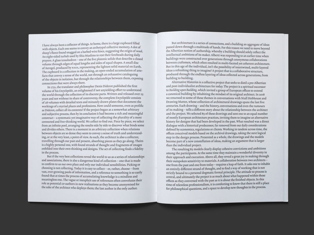 位于英国萨默塞特的建筑绘图公司 Drawing Matter 将展览的概念转化为了书籍的形式,在《Alternative Histories》中创造了一种新颖的视觉体验。