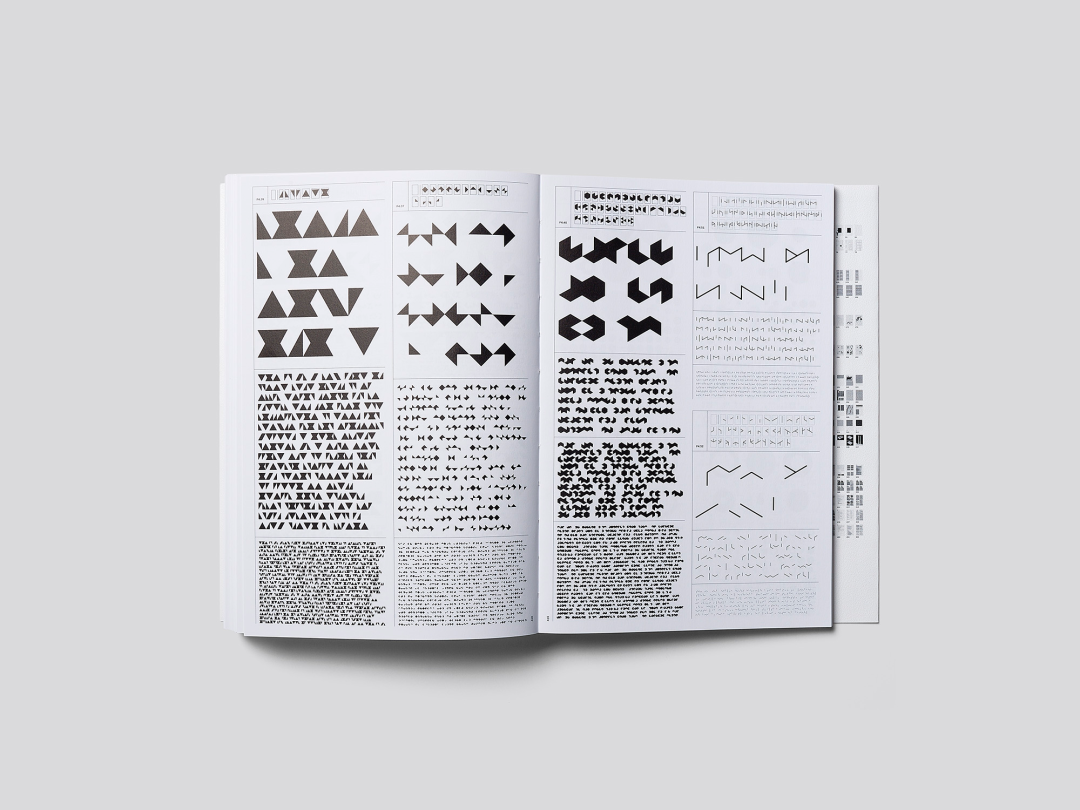 在《Dimensions of two》这本内容丰富的白色软皮书中,三位设计师总结了他们多年来对平面设计基本原则的独特实践研究。 整本书大部分是黑白色的,涉及诸如大小比例、页面划分、图形对象和字母形状等主题。 它们密密麻麻地塞满了各种用极简主义文本信息阐明的图画和图式。
