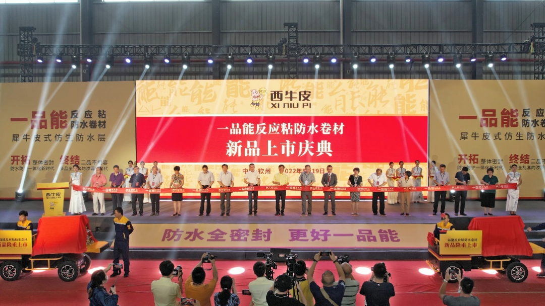 2022年8月19日,西牛皮防水科技有限公司承办的“第二届高品质防水革新研讨会暨一品能反应粘防水卷材新品上市庆典”在西牛皮(钦州)科技园隆重举行。300多位来自业内权威机构的领导和专家学者,以及全国各地建设单位、设计院、施工方、媒体等行业代表,共同探讨如何通过新材料防水防护一体化,引领行业创新发展。