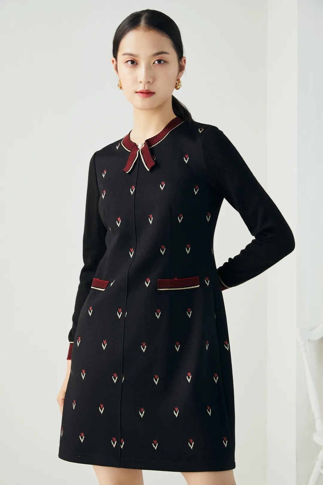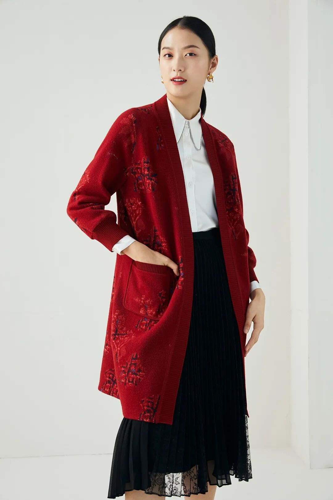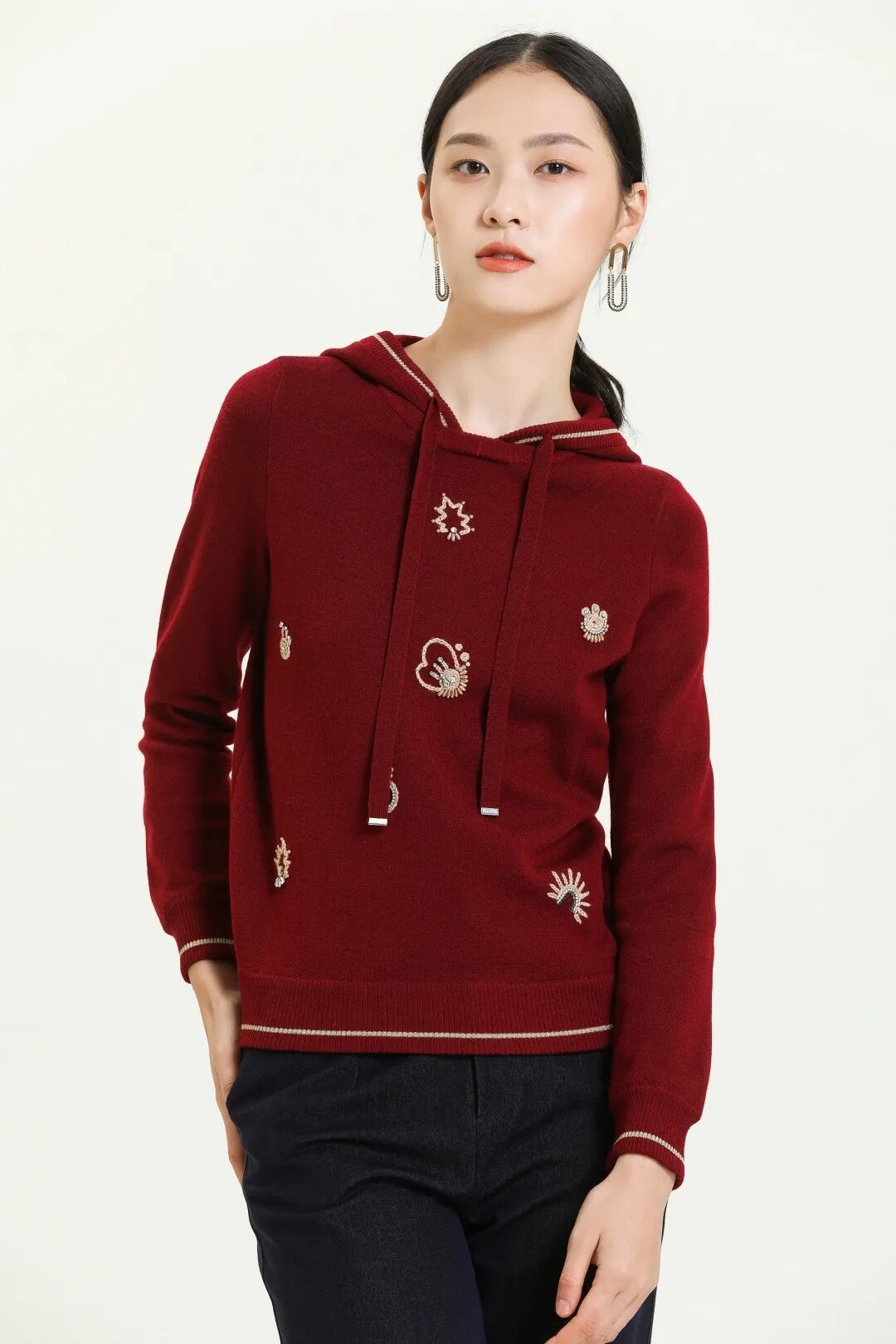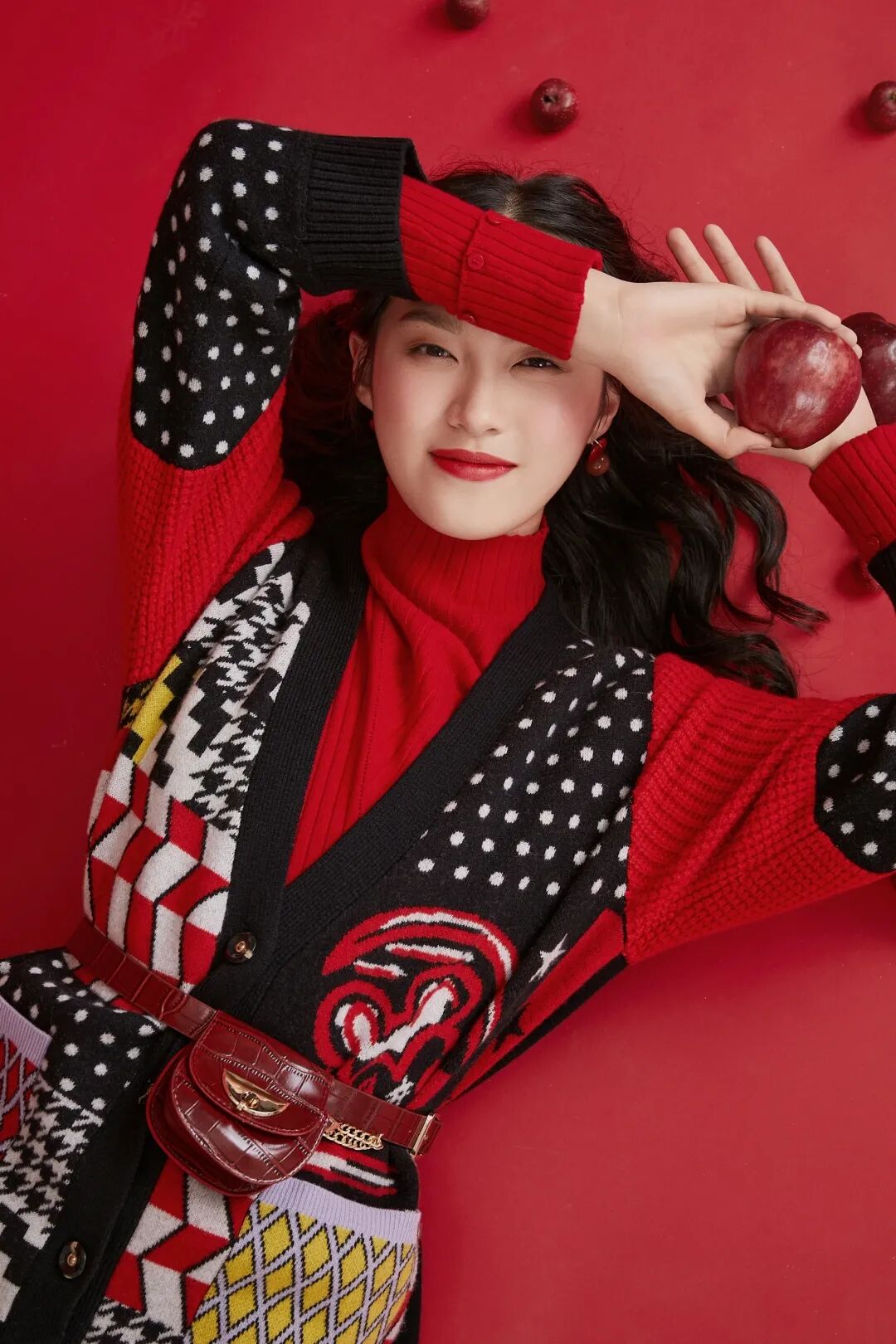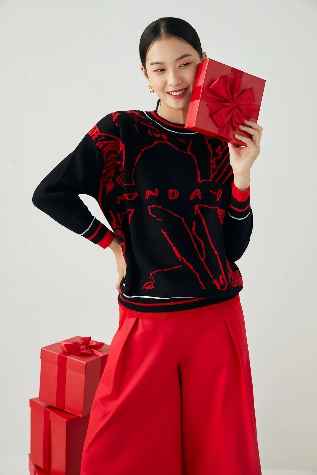 红色的针织衫、毛衣、配饰等不管怎样搭配,都会也给人一种明朗喜悦的感觉。