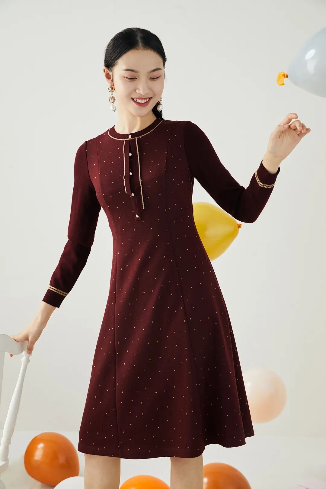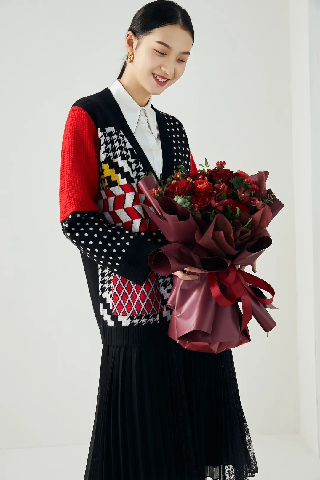 跨年活动如果在室内进行的话,建议穿红色或红色元素的毛衣或针织衫。
