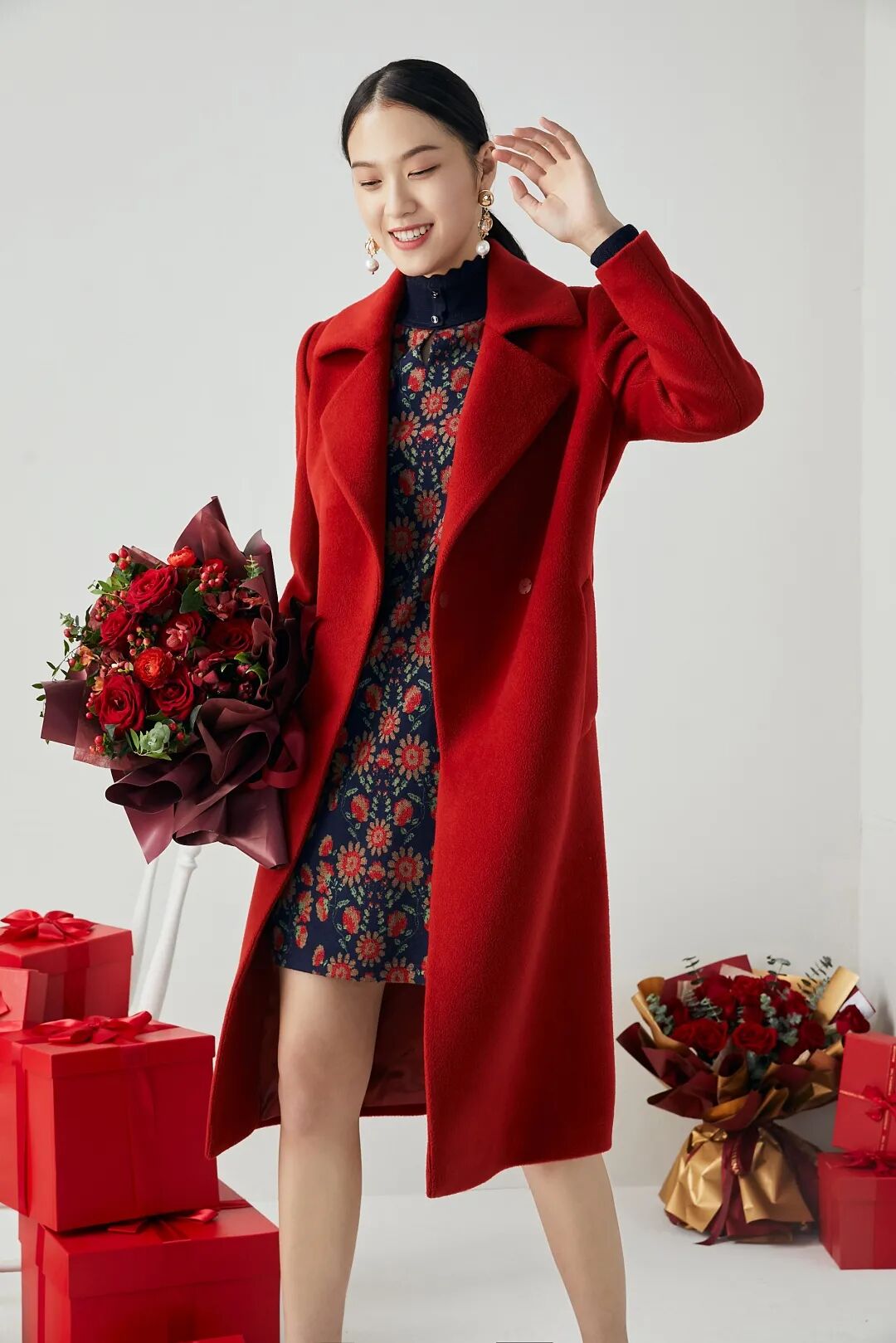 抛开其他的色彩象征,红色对于我们而言一直都是最吉利的颜色。辞旧迎新之际,来一件红色毛呢大衣开启穿搭的高光时刻。