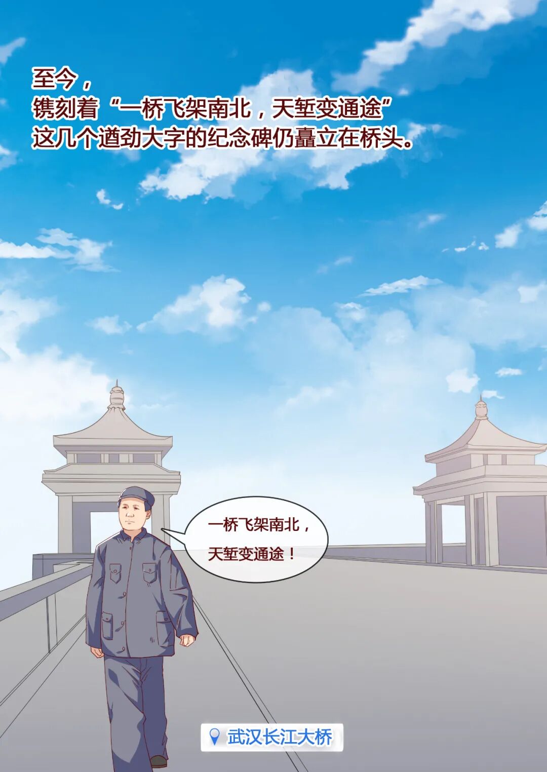 毛泽东来到桥面,从汉阳桥头一直走到武昌桥头堡。