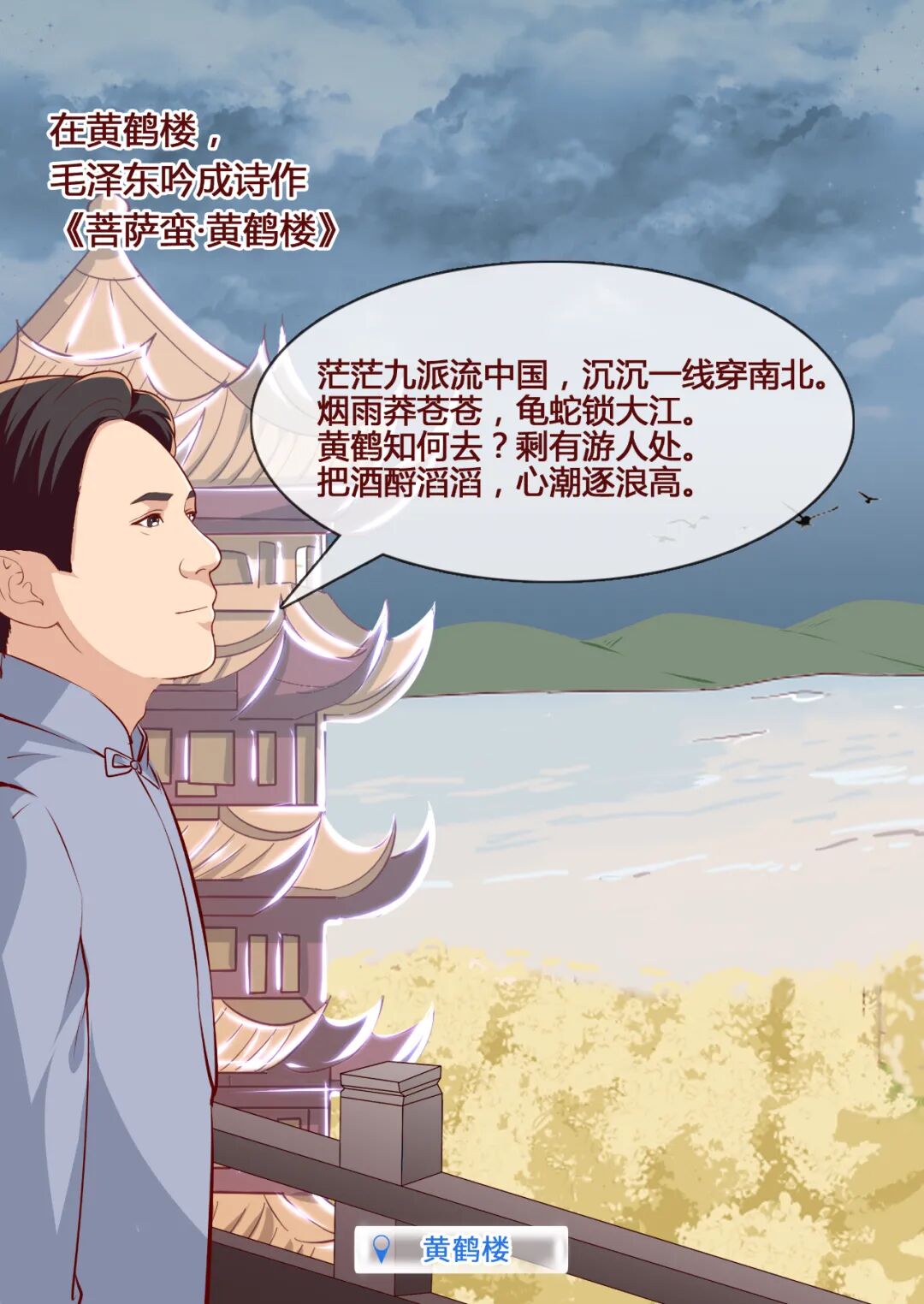 毛泽东伫立于长江之滨,嗷啸于白云黄鹤之乡,