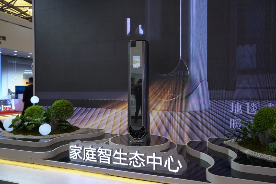 在凌达压缩机展区,展品覆盖家用空调、商用空调、车载空调、冷冻冷藏、干衣机、热泵、微型制冷等多个领域。作为格力全产业链中的重要一环,凌达压缩机借助此次展会大秀“肌肉”,位于展台C位的明星产品三缸转子压缩机,采用双级压缩容积比可变技术,具有在宽温范围内仍可以高效可靠运行的特点,即使在室外环境温度低至-25℃工况下,还能保证热泵制热量不衰减。