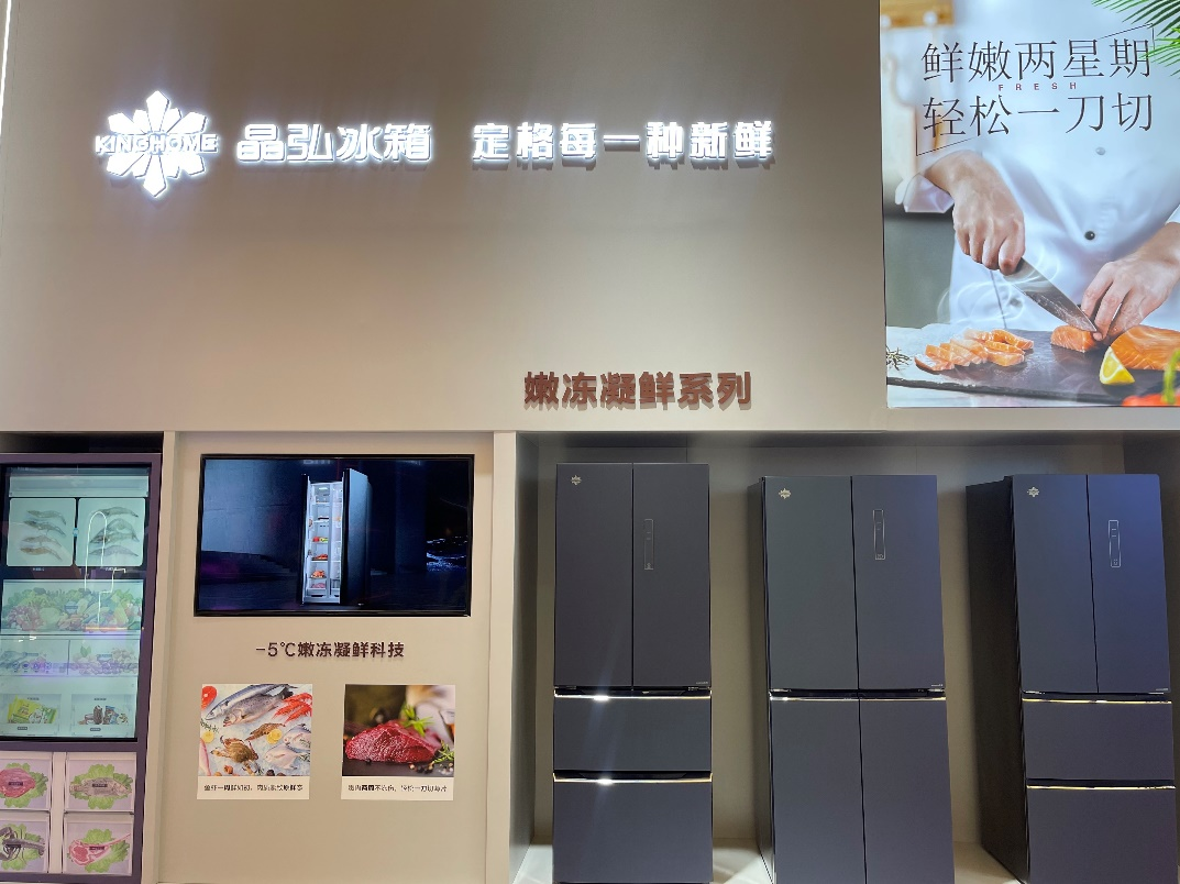 在晶弘冰箱展区,一系列大容积、精细存储、健康保鲜的冰箱产品致力于“定格每一种新鲜”。晶弘冰箱通过对不同食材保鲜的需求,设计了不同的精细化保鲜方案,实现了定制化的保鲜,让不同的食材都能够得到最完善的存储。