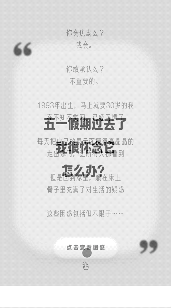 @GQ实验室 在五 · 四发布了《低估1993年出生的人,我不同意》,以 <translate> 的 <discrete> 瞬移形式,在开屏点击后形成不断加速的序列帧效果,让三十而立的青年「疑问」层层递进。展开后,以多个分段弹性层层二阶展开进一步展示漫画图文内容,由此对大量内容信息进行了合理的大纲分级,降低阅读压力的同时提升了内容条理。作品由@交互实验室 开发,非常值得各位同志们学习这类高密度图文内容分级展示的交互排版思路。
