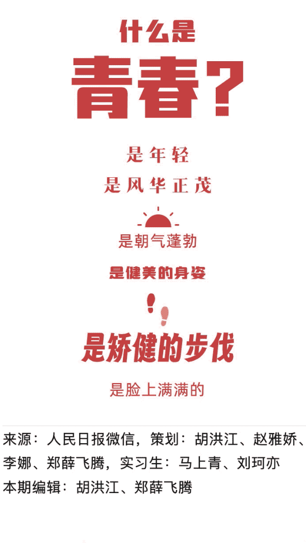 层层伸长是一种最早出现在知名媒体账号@GQ实验室 上《红了!》的 SVG 互动模型,通过连续的「是……」结构文案进行情绪递进,原作由@符号互动工作室 开发,它的设计方法论和排版操作流程可以点击阅读《浅谈「微雕」与 GQ 实验室<红了!>》了解。本文承袭了层层伸长的核心动画设计思路,但在此基础上更有自己的创意延展,既通过一句「可青春只是如此吗?」作为起承转合,将交互的时间线索一分为二。在第一轮自动的层层展开完成后,用户通过「点击这里」的按钮触发,使得图文高度坍缩到 0 并再次启动新一轮的层层展开,构建出了独有的行文框架。这较之不少党政融媒体对照商业案例邯郸学步的陋习,是一个非常值得点赞的二创案例。