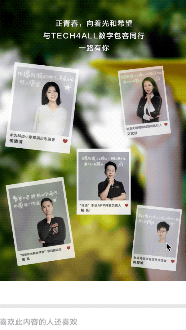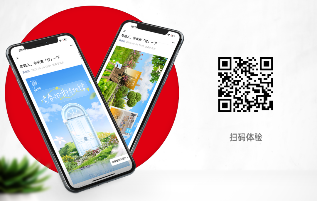 @真果粒 也是今年积极呼应青年节的品牌公众号,在五 · 四发布了《年轻人,今天来「甘」一下》。本文由知名开发者@三千喵 设计,采用 CSS perspective 3D 裸眼 3D 排版,形成了一个立体感十足的花园空间。四周或被悬挂或立于画架上的图像,呈现了不同的职场、生活的场景,点击后展现了不同的青年范儿积极向上的文案。