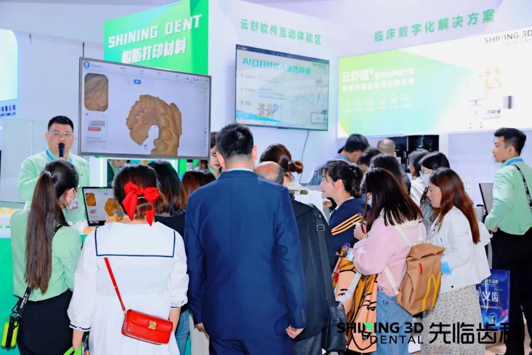 先临齿科充分展现了品牌在数字化口腔领域的积淀与成就。展位内,新品Aoralscan 3i口腔数字印模仪、DS FSCAN+面部3D扫描仪、数智化口腔健康管理方案,主打口腔预防理念,兼顾颜值与实力,在展会上大放异彩。明星方案云舒植数字化种植解决方案、云舒齐3D数字化矫正方案、All-digital Lab全数字化产线方案均在展会现场吸粉无数。