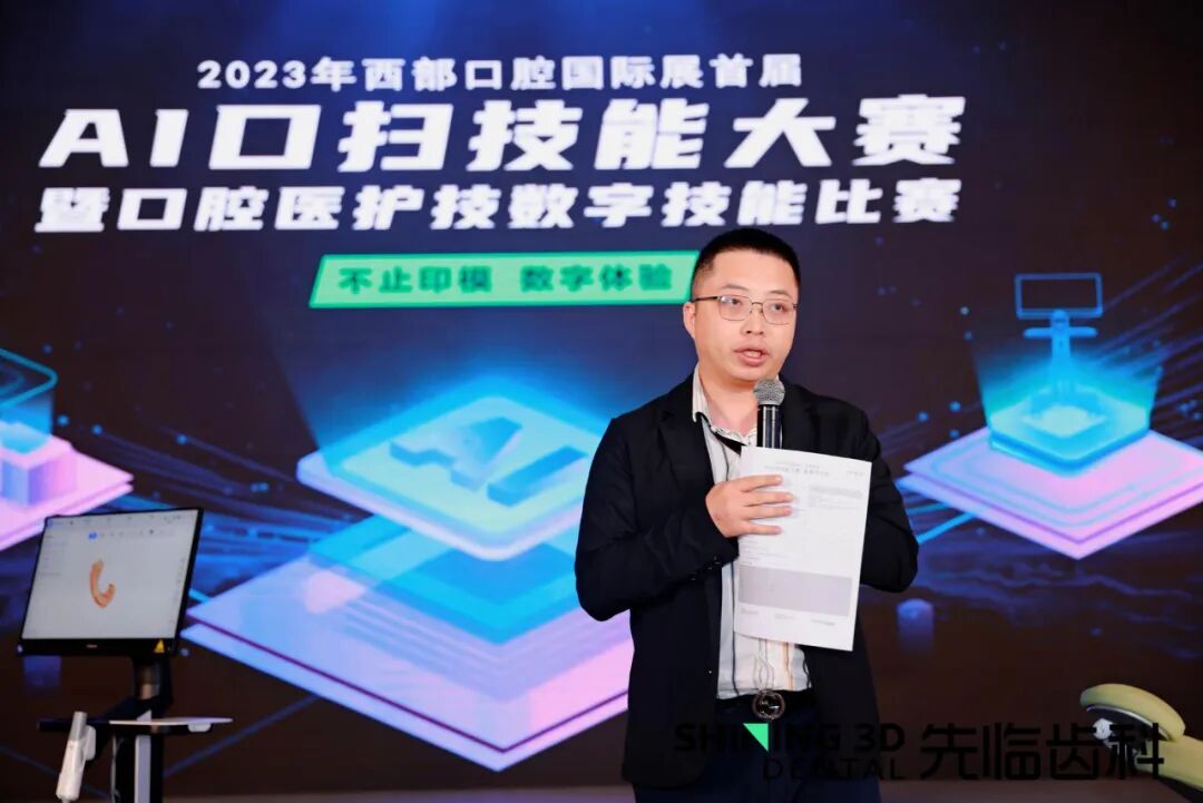 先临齿科作为2023西部国际口腔展首届“AI口扫技能大赛暨口腔医护技数字技能比赛”承办单位及大赛用口扫唯一供应商,邀请了中华口腔医学会口腔修复专委会主委于海洋教授、四川大学华西口腔医院修复工艺科岳莉主任、中华口腔医学会修复专委会青年委员杨扬博士、四川大学华西口腔医学院李丹雪博士、段斌口腔段斌院长、协尔口腔护理主管母倩饮女士、重庆艺美义齿制作有限公司数字化主管周卫勇先生、派瑞义齿种植中心主管郑静女士、先临齿科应用服务部经理王霞女士、先临齿科市场总监温培争先生作为比赛特邀嘉宾及评委老师。![]()