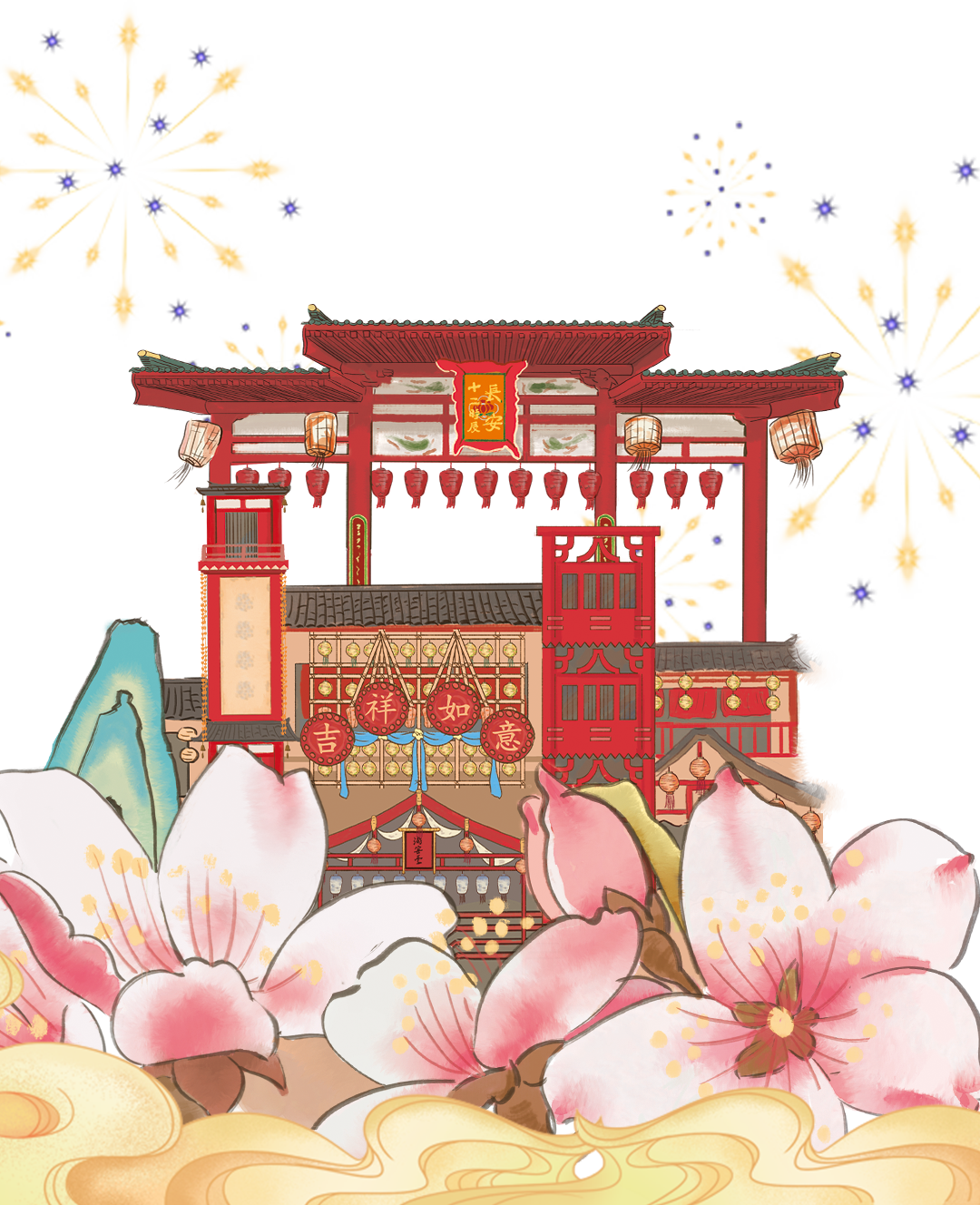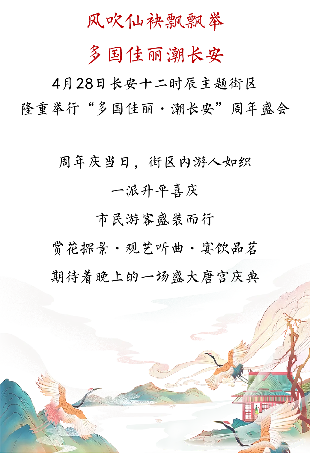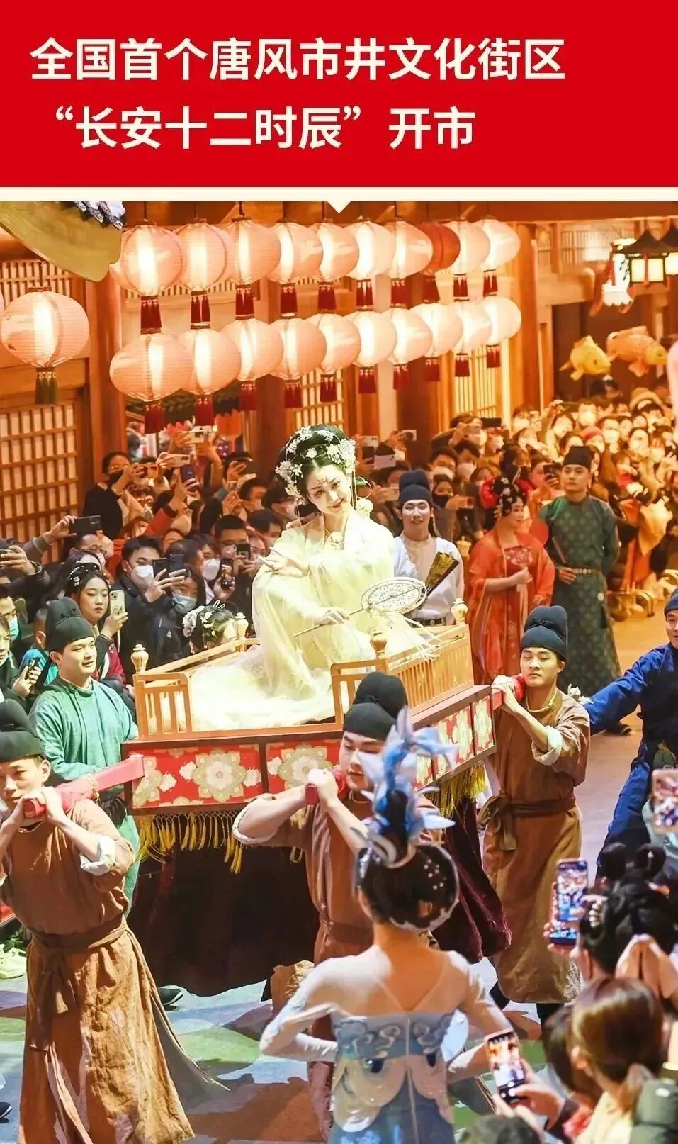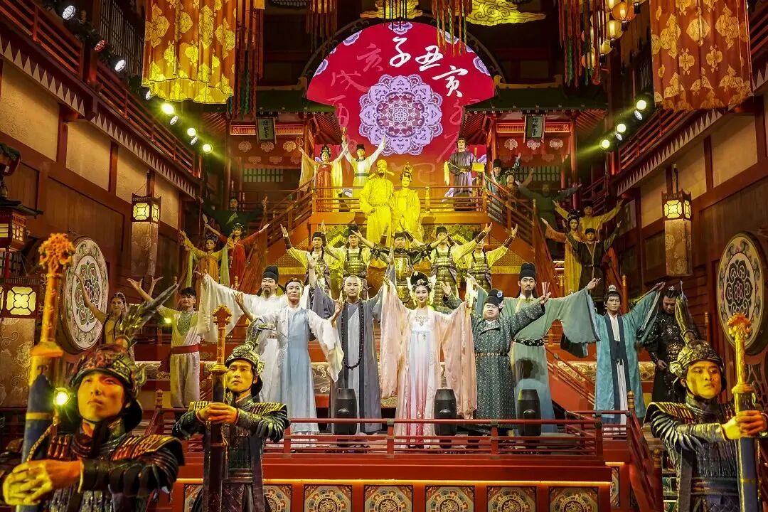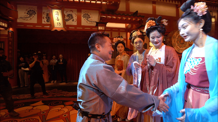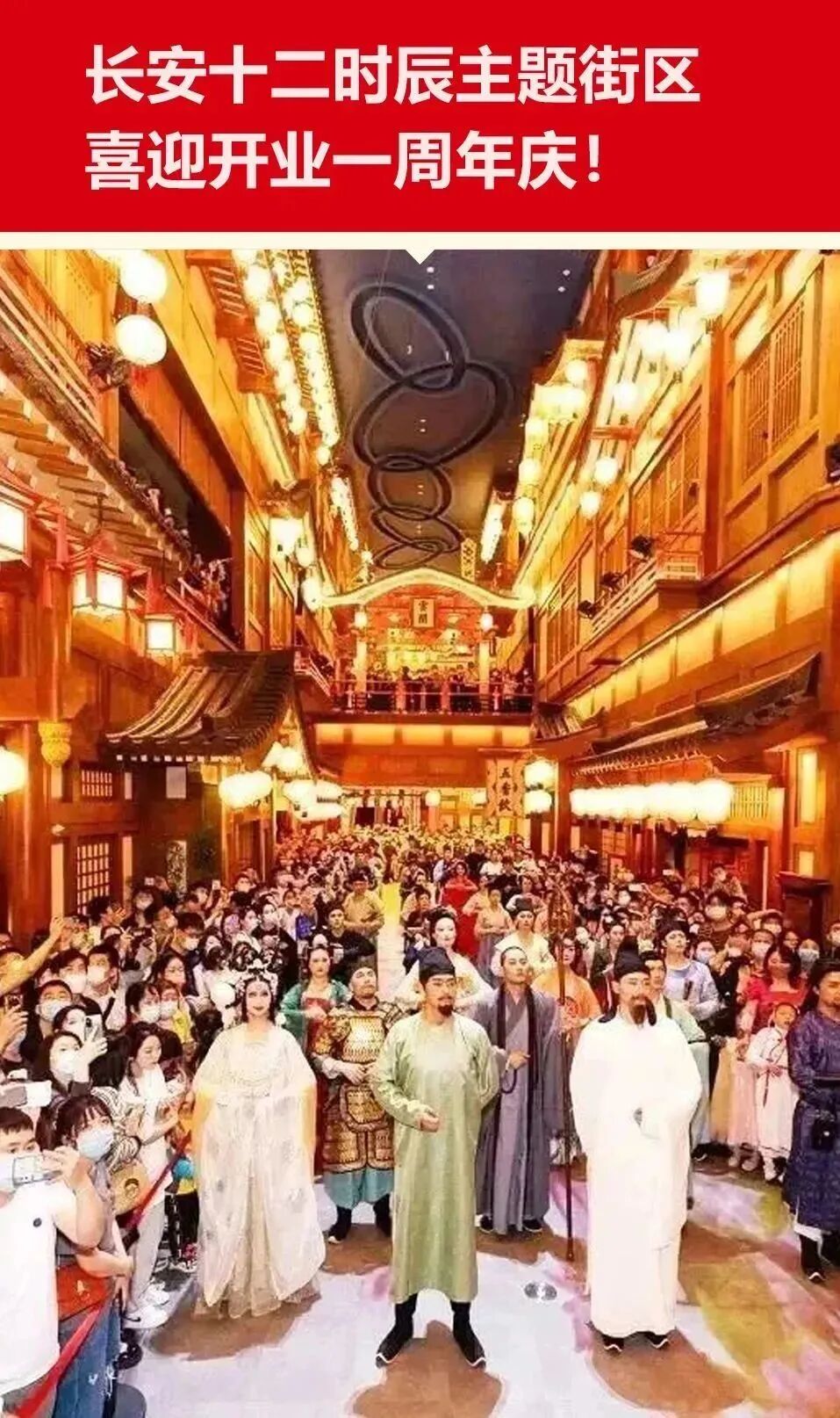 长安十二时辰主题街区主要演员共同亮相,祝愿长安城年复一年,熙攘繁盛、光耀万年。