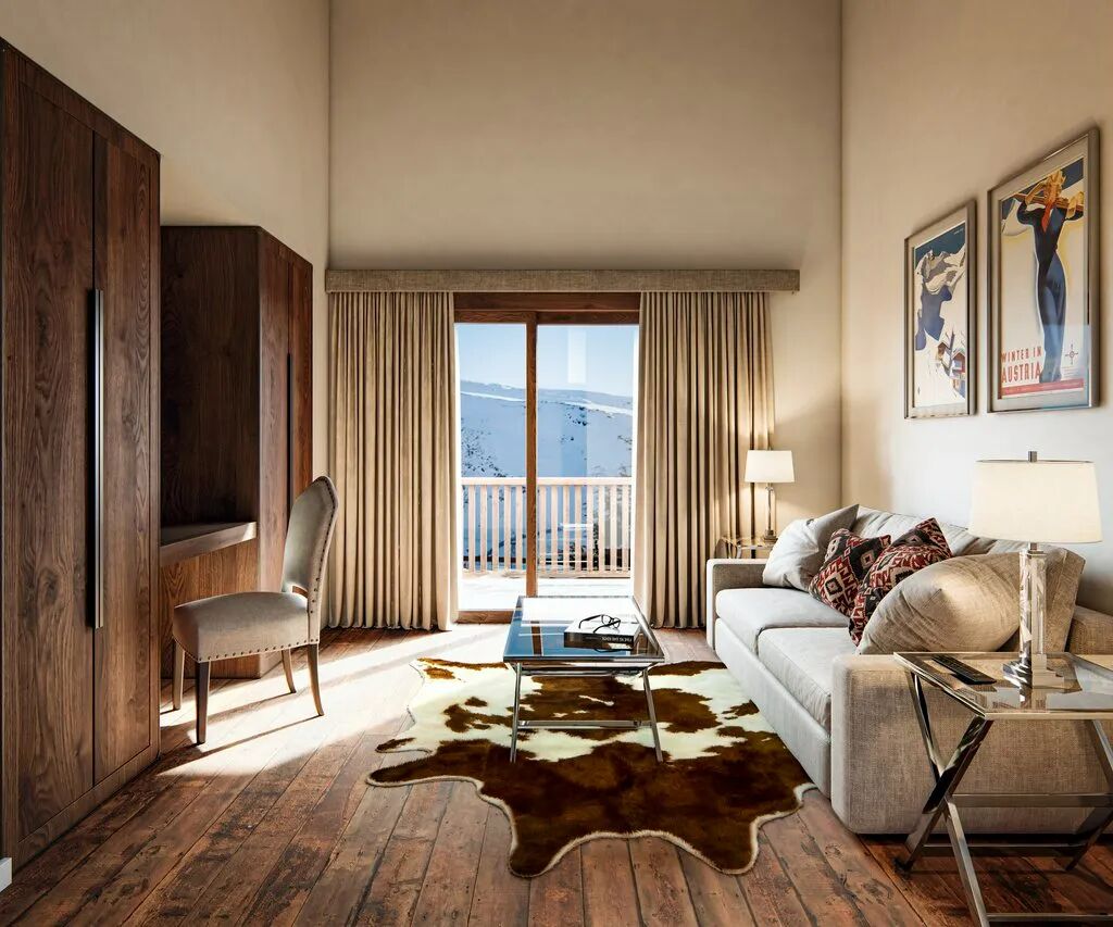 沿着大厅蜿蜒的椭圆楼梯而上是一系列漂亮的客房和套房,大部分都设有直面雪道的阳台,让你可以坐在“前排”观赏位上看景。木屋内部主打焦糖色的陈设,无论是温热着脚丫的地板,堆满了书的书架,暖和的人造毛皮毯,还是可以放置滑雪装备的大衣柜和带有淋浴的水疗浴室,每一个细节都让人深感宾至如归。