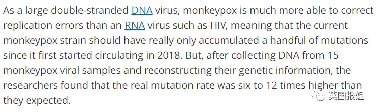 而一般来说,科学家们认为,像猴痘这样的DNA病毒,每年一般不会超过一两个突变,本应要半个世纪才会突变成这样……