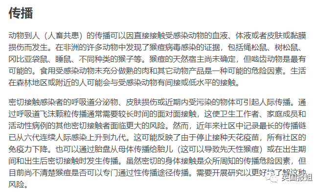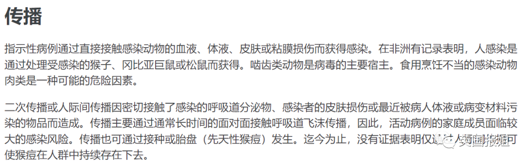 今年5月份,猴痘的指南界面进行了更新,将“不会通过人传人持续存在”删除: