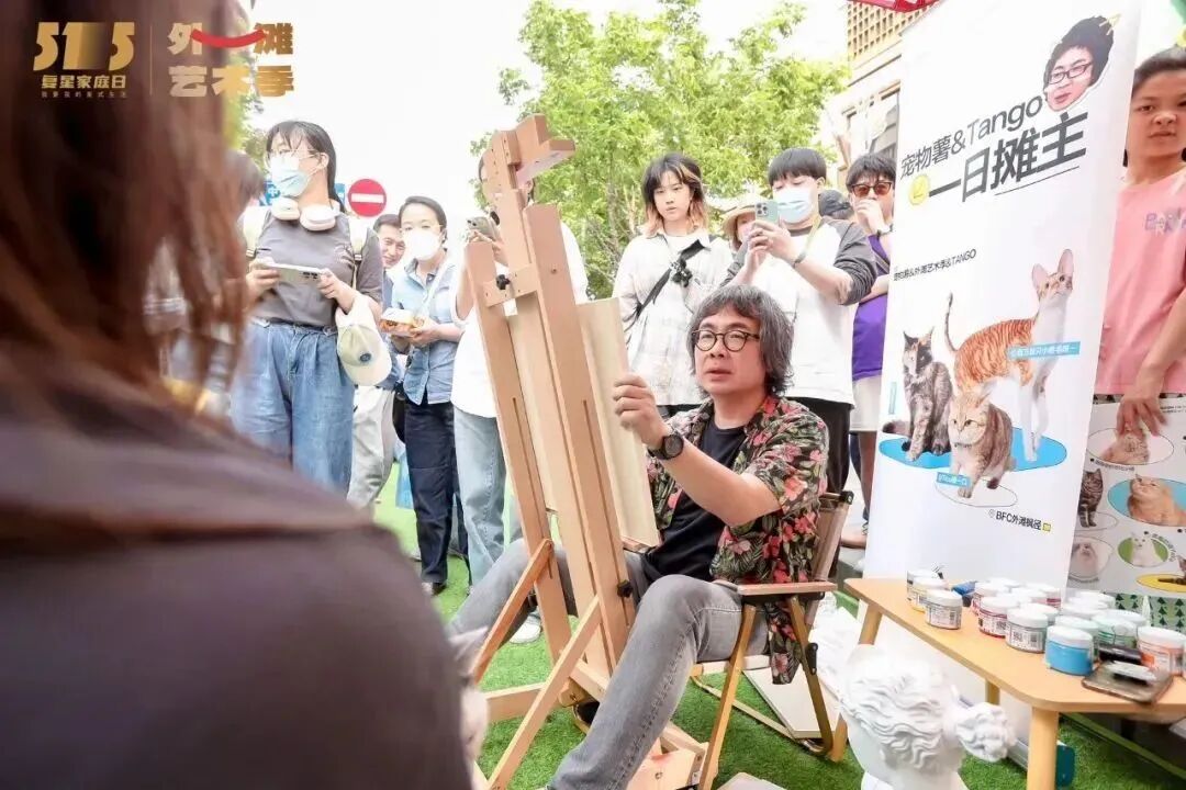 在过去的周末,Tango也出现在了外滩枫径集市,作为“一日摊主”,与众多猫咪亲切互动,现场创作。