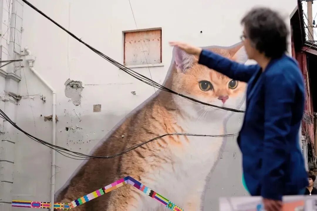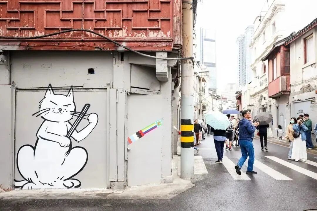 「外滩猫街」由外滩艺术季联合以爱猫著称的艺术家Tango、小红书平台共同策划创作。我们用1440的小时的筹备,送了32只猫咪登上墙面,更换来一条老街的“新生”。