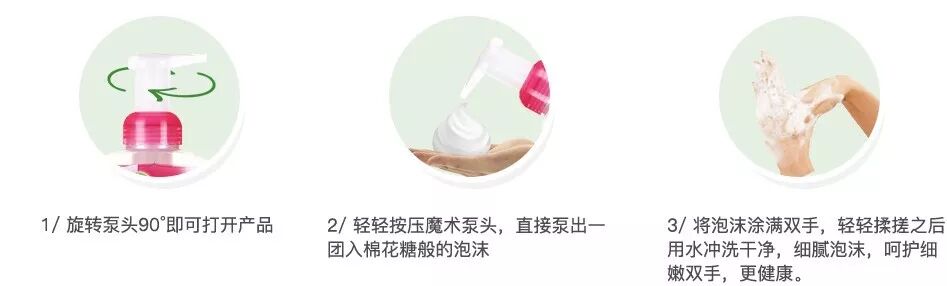 (2)泡沫细腻——像棉花糖一样柔软,成分易吸收,大大提升清洁效果,尽享洗手乐趣;
