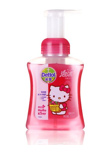 Hello Kitty全新包装,独特的魔法泵头,轻轻按压,出来的泡沫细腻又舒服。并且采用PH均衡配方,自然亲肤,对肌肤很温和,深入肌肤毛孔清洁,让孩子洗手充满乐趣。