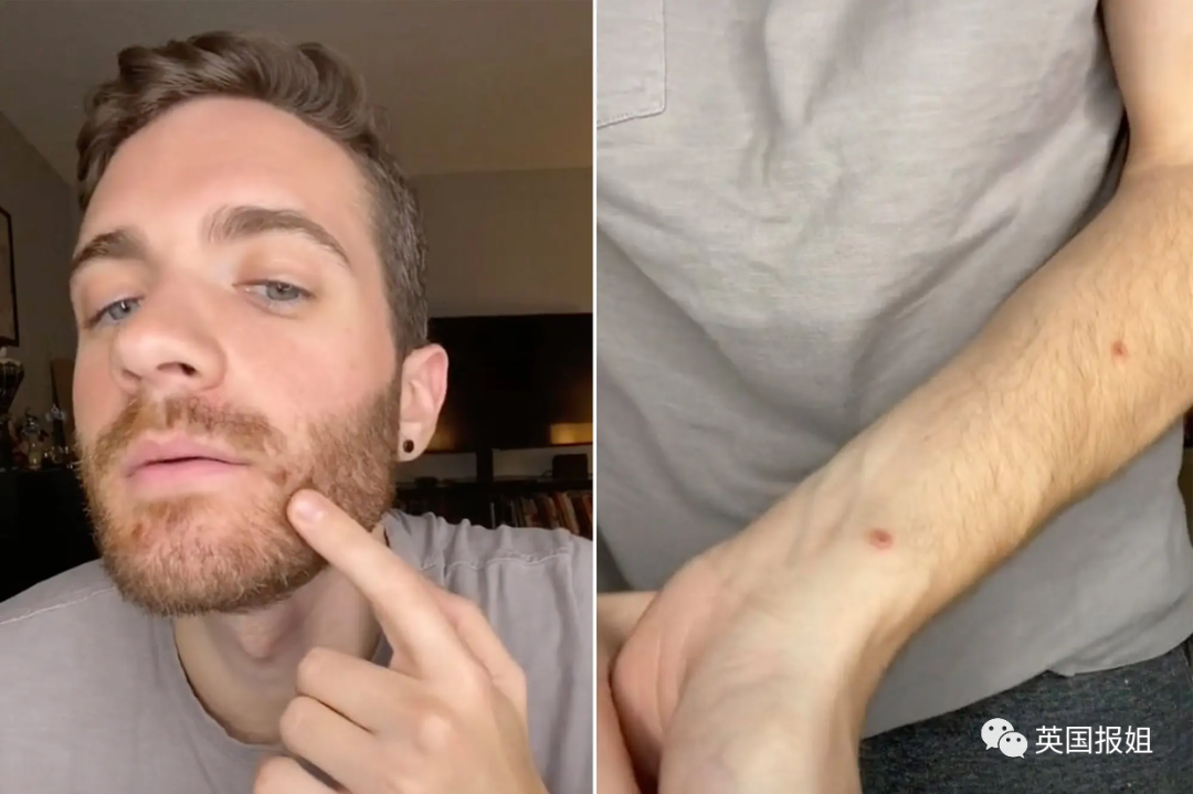 本来他以为第二天这个脓包就会消失,但一晚上过去,Todd的右臂、背部、脖子全都出现了脓包,皮肤病变的地方又痛又痒,他的腿也非常疼。