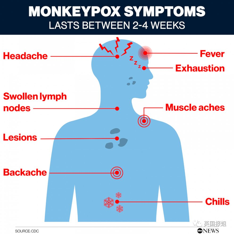 在一个月的康复期间,她还经历了高烧、皮疹、头疼和严重的肌肉、关节痛等症状。这些都是猴痘的常见症状,并不只是脸上落疤流脓这么简单。