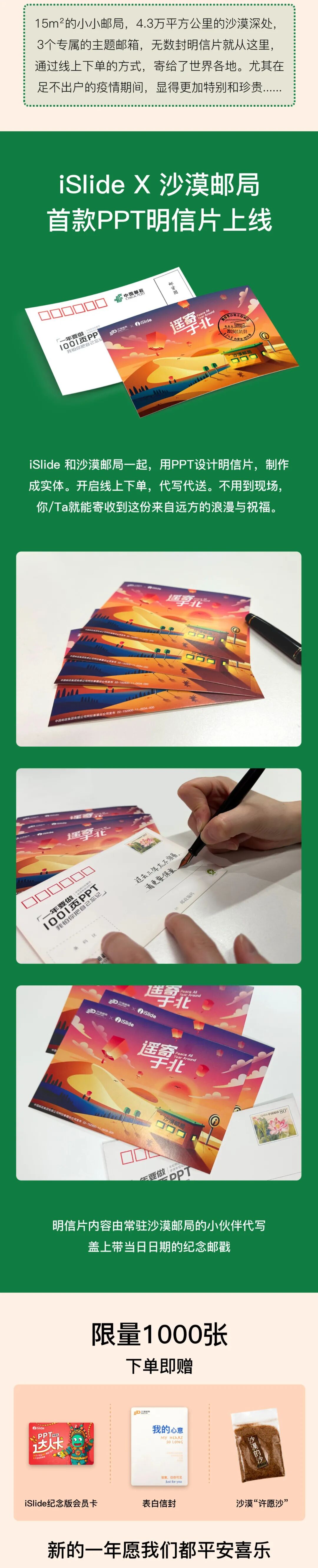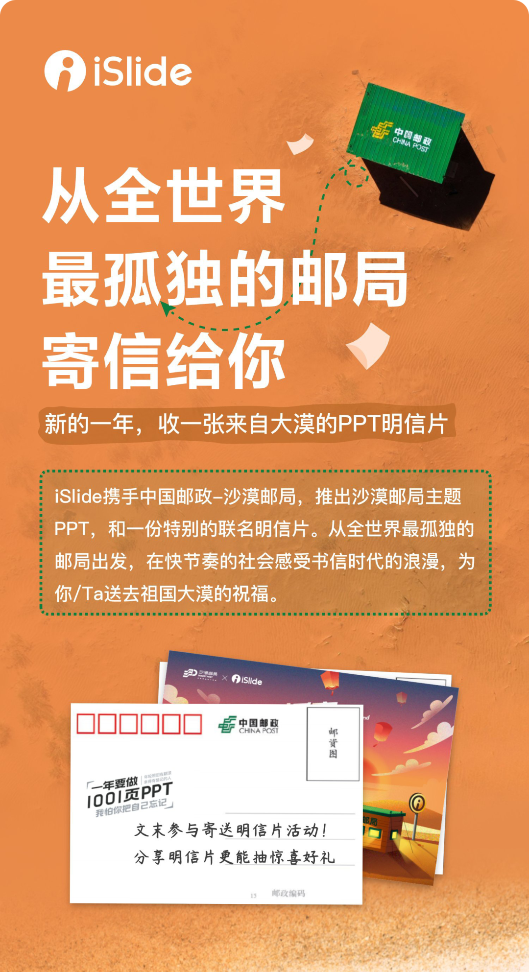 价值 99 元的 iSlide 年会员 + 本次沙漠邮局联名明信片免费寄!!!