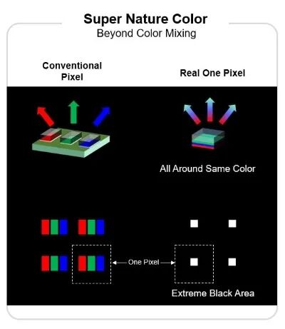 2020年,韩国科学技术院(KAIST)的研究团队开发了一种生产高分辨率Micro LED显示器的方法。团队将红绿蓝LED有源层堆叠在3D空间之后使用半导体图案化工艺,并通过具有滤光片特性的绝缘膜,消除红、蓝光色干扰。最终,显示器拥有每英寸超过6万像素的高分辨率。