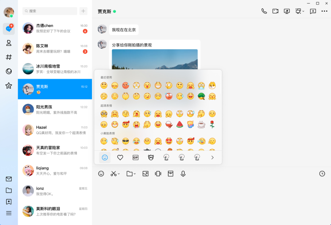 超级表情、小黄脸表情和emoji表情,