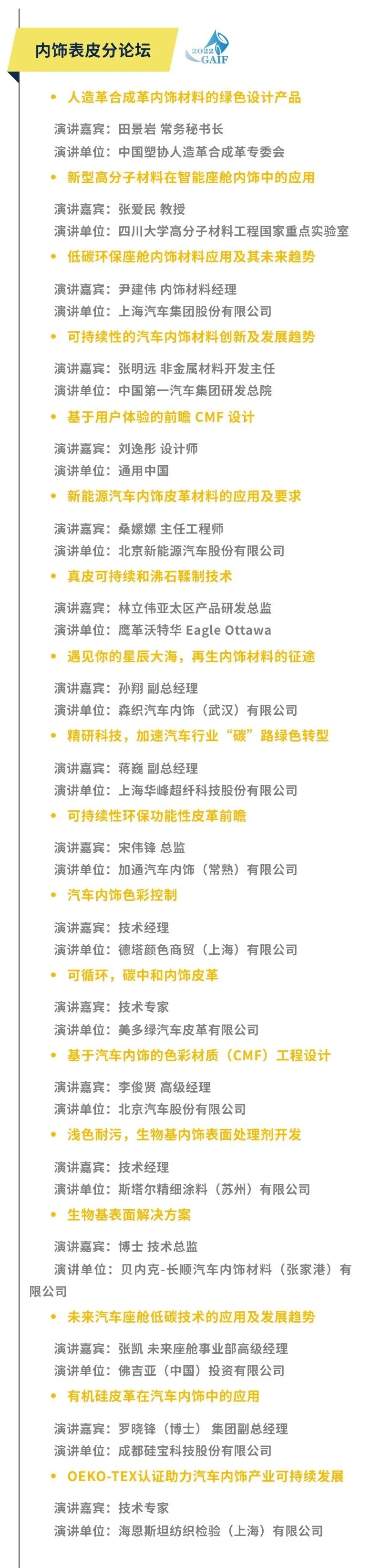 *预计大会将有超过80位海内外专家演讲分享行业前瞻技术信息,超过1000位内饰行业精英汇聚苏州知音温德姆至尊酒店,EACC2022期待您的参与。