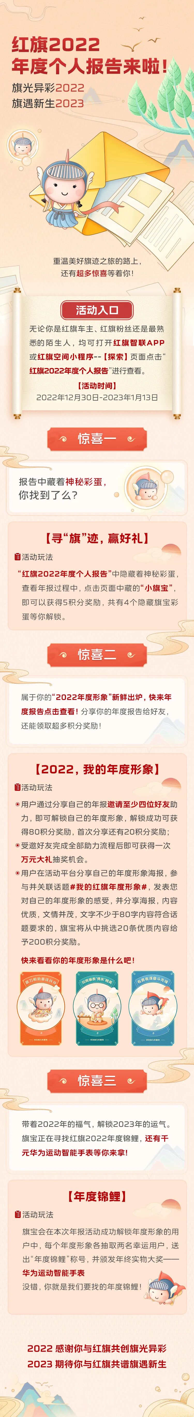 摘要:打开红旗2022年度个人报告,还有超多惊喜等着你!