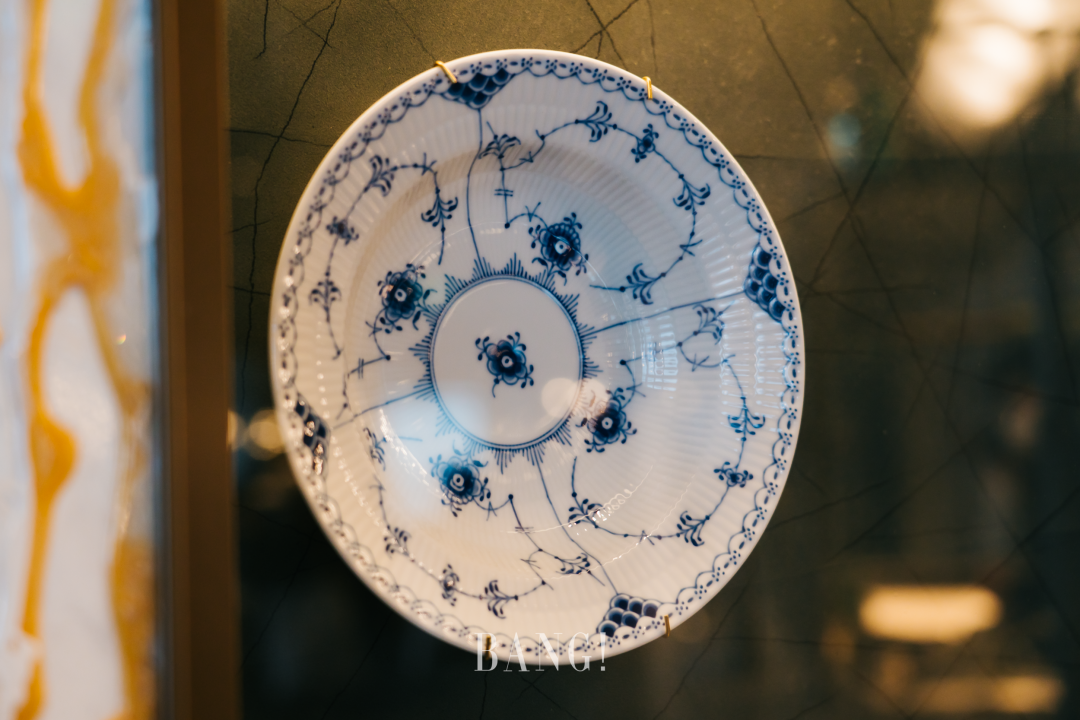 而位于58层的御苑中餐厅取名自钓鱼台国宾馆的院中之园,雅致轻奢的环境更显海派摩登。各种材质、花样的器皿陈列在餐厅的橱窗之中,我们仿佛来到了一座小型瓷艺餐具博物馆。