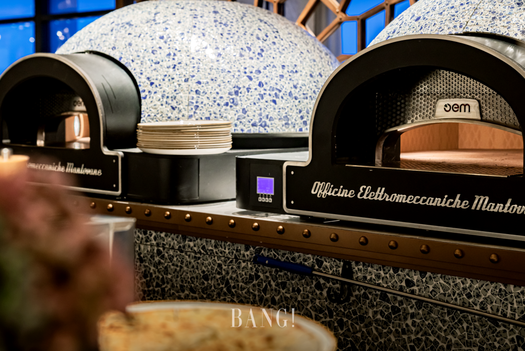 位于酒店57层的水岸意大利餐厅传承意式文化,刚走入餐厅内我们就被采用青花瓷元素设计的披萨烤炉吸引了目光,东西方文化的融合与碰撞不仅营造出视觉盛宴,同时为我们带来传统与创新相结合的特色美食。