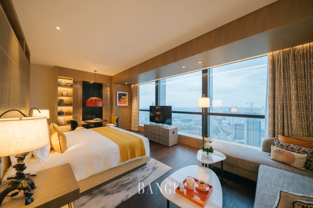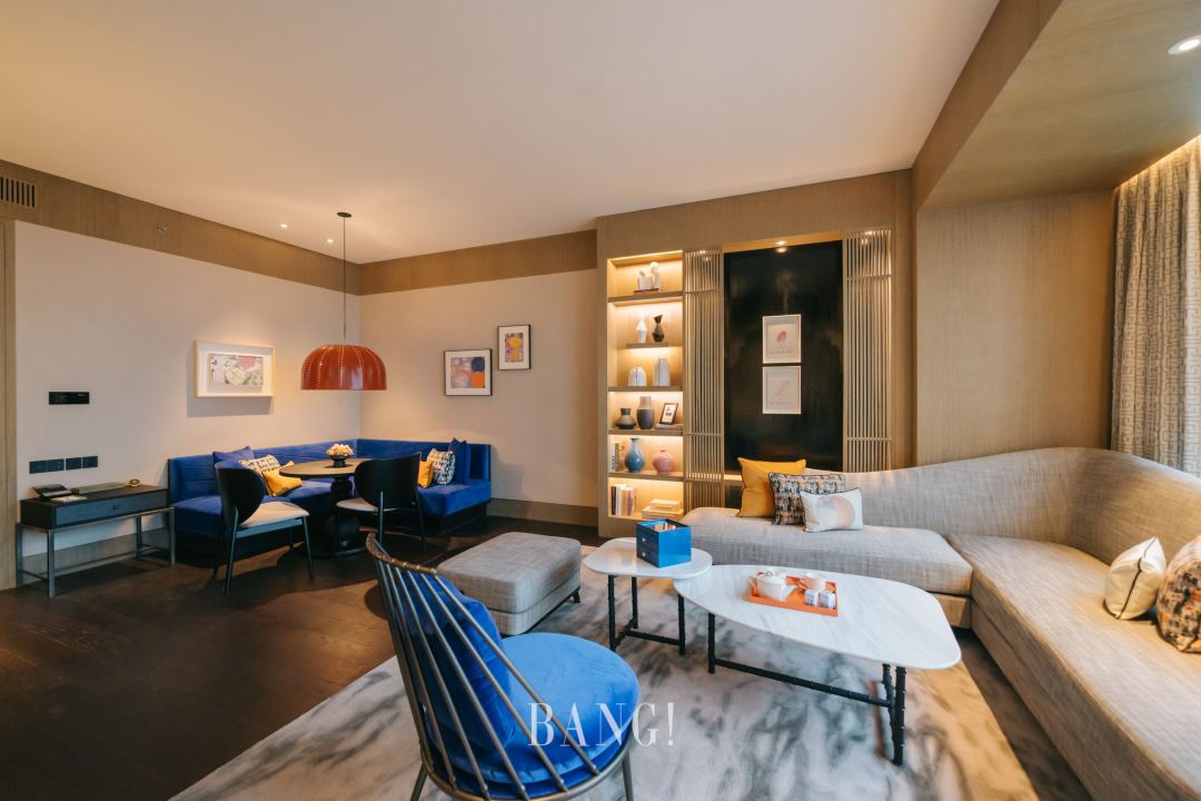 在这里开启多元奢华体验,精彩生活随时都在“上演”!客房空间以柔和的原木色为主基调,搭配明亮的蓝色或橙色,光线透过落地窗投射进来时,岁月静好的画面令我们立马就能体验到空间传递出的幸福感。