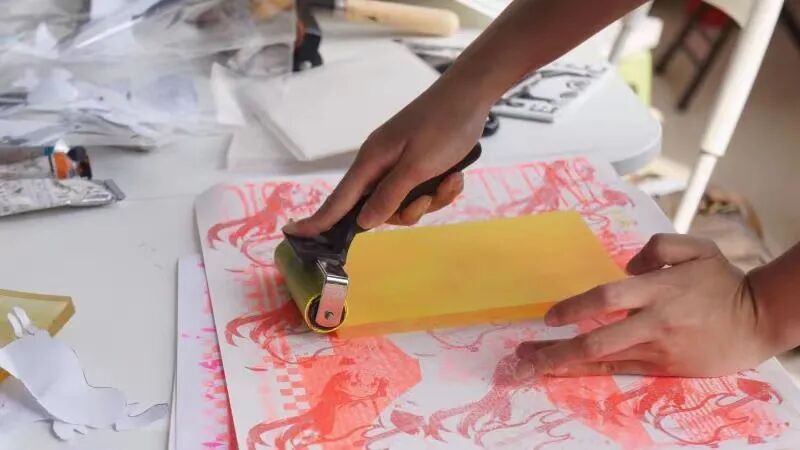 独立出版工作室「脏像素InkyPixel」也参与进来,将现场教学明胶版画制作。明胶版画是印刷方式的一种,参与者可以自由拓印恐龙图案,完成专属明胶版画。