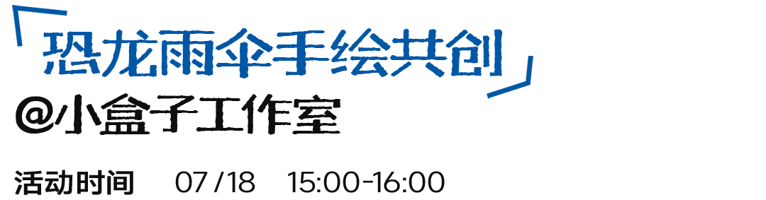 专攻儿童艺术创作教育的「小盒子工作室」,即将和孩子们上演一场天马行空的街头艺术。童龄小艺术家将在雨伞上,随心所欲画出自己心中的恐龙世界。这些手绘雨伞还将组装成艺术装置,成为「恐龙的三重梦境」共创插画展的一部分。