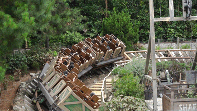 乘坐矿车在山谷中穿梭飞驰,旋转、加速、倒退,呼啸而过的尖叫声让围观的朋友都感受到了刺激。