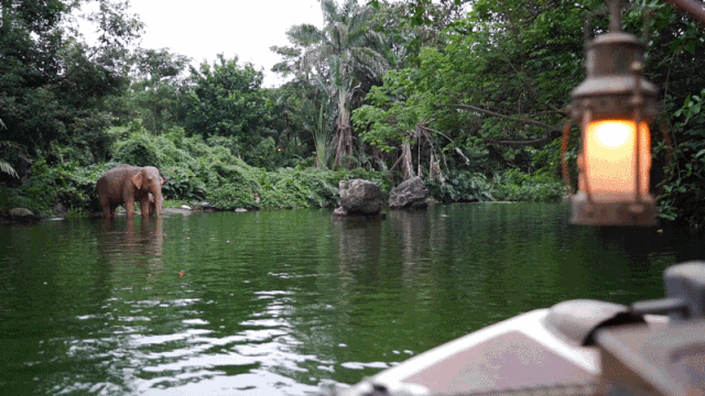 首先来到探险世界,跟随船长进行一场森林河流之旅。逼真的森林动物,礁石、火光和声效让旅程超有沉浸感,童年的探险梦又重燃了。
