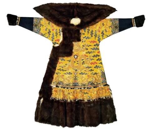▲ 清康熙 黄缎织彩云金龙纹皮冬朝服
