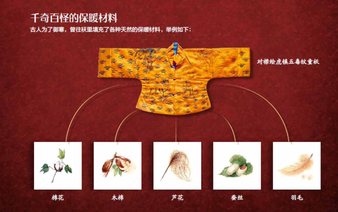 ▲ 花样百出的袄那么,在“袄”尚未出现的时代,古人何以抵御刺骨的寒风?“纩(絮以丝绵)为襺(jiǎn),缊(絮以乱麻)为袍,襌(无衬里)为䌹,帛(以帛为表里)为褶。”