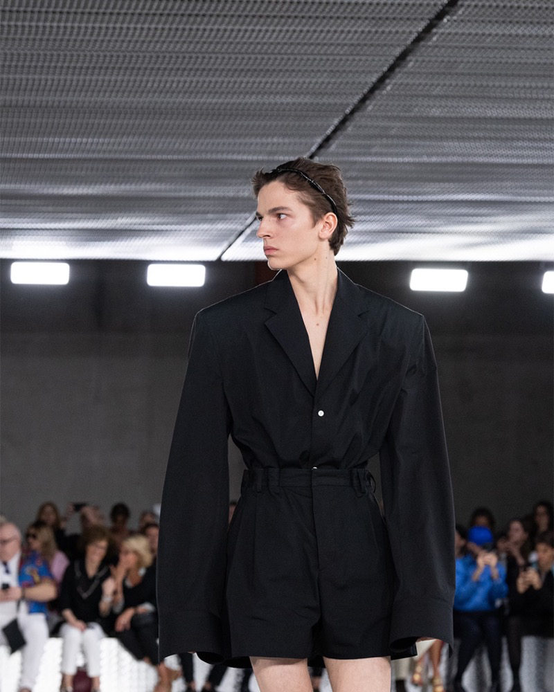 前段时间,一场Prada大秀被刷屏了。从天花板上流下的半透明液体成了一大亮点。这次Prada继续把秀场设在Deposito会场,秀场整体被银色所覆盖,从天花板、地板到长凳和立柱,随着走秀开始,流下半透明的胶状液体,形成了一道模糊的幕帘。这一秀场装置点出了 Miuccia Prada 和 Raf Simons 本季探讨的“流动形态”主题。这一季,两位设计师从衬衫出发,以这一柔软流动的单品重塑了西装、大衣、运动装和工装外套。高腰线是Prada 2024春夏男装系列突出的特色,衬衫同样是本季的灵魂,两位设计师以衬衫为出发点对其结构和廓形进行改造,从而呈现整个男装系列。同时多口袋的马甲也是Prada 2024春夏男装系列中较为突出的设计,与衬衫搭配起来,工装风效果十足。